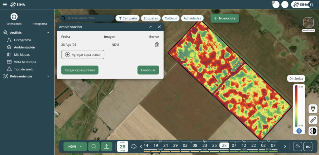 La clave está en la integración dentro del ecosistema SIMA, que centraliza toda la información – desde ambientaciones y prescripciones, hasta mapas de rendimiento e imágenes satelitales – en una sola plataforma. Así, los equipos de producción acceden a una herramienta poderosa que no solo genera datos, sino que los conecta para mejorar la toma de decisiones y aumentar la rentabilidad por hectárea.